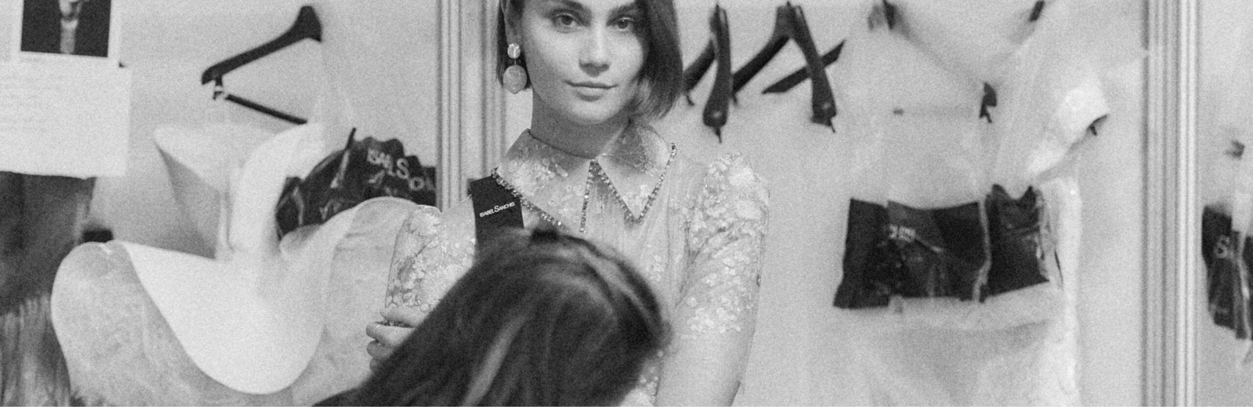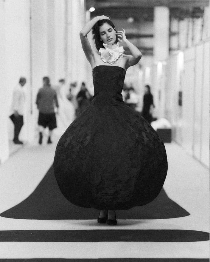 Beyond the spotlight, there is another silent choreography. Needles, steamers, zippers, last-minute adjustments… dressmakers, pattern makers, and ironing specialists are essential to this invisible machinery.