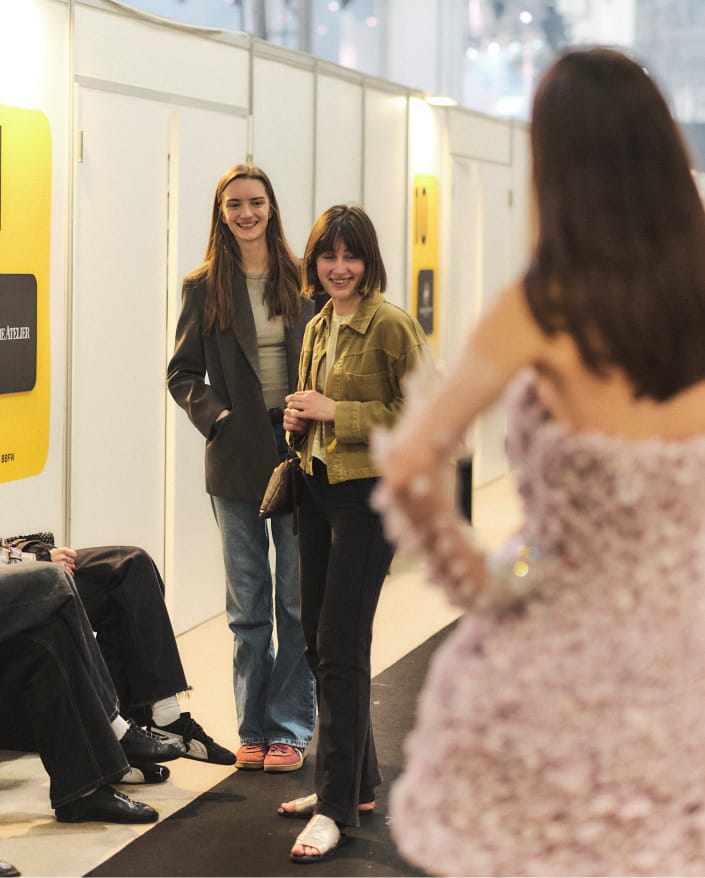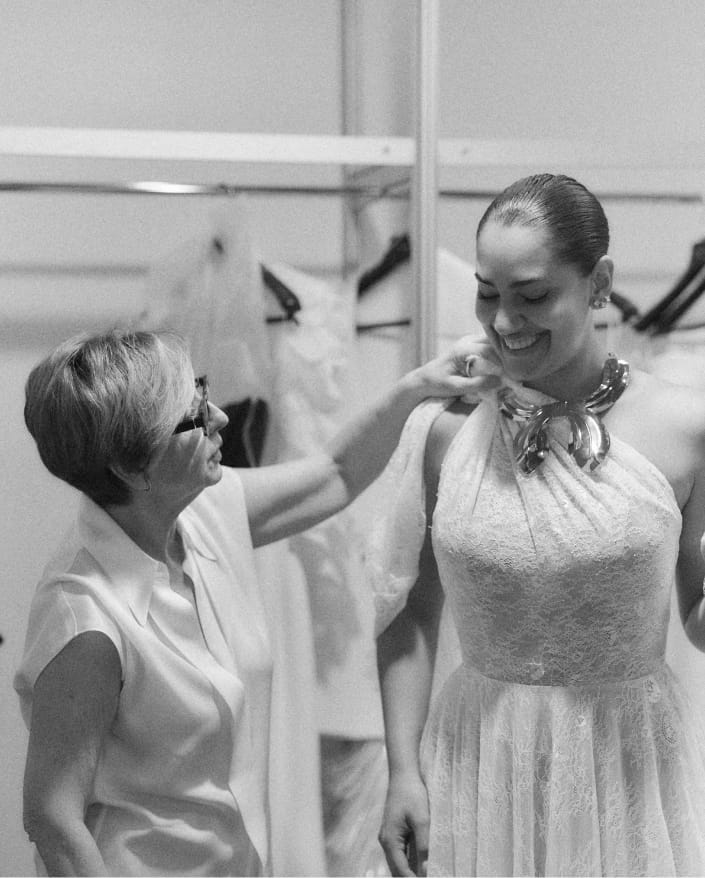 For brands, backstage is the final filter before presenting a collection they have worked on for months. Each dress is checked one last time, fitted to the model, and reviewed to ensure all elements work together.