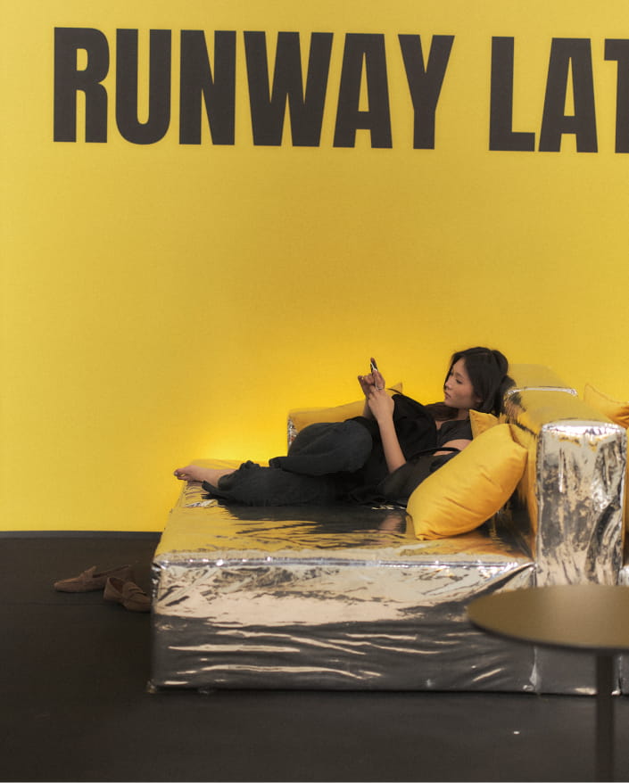 Her team coordinates international castings, model line-ups, schedules, music, video, fittings, and communication between technical areas. A complex system that starts long before the event week.